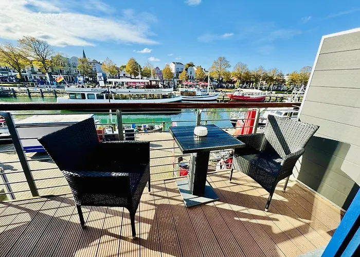 Eine Küchenzeile bietet eine Mikrowelle, einen Wasserkocher und einen Kühlschrank an. Das Restaurant Herr Ober verwöhnt Gäste mit deutschen Speisen und liegt zudem ungefähr 5 Autominuten von hier entfernt. Von der Ferienwohnung Stromdampfer, Hafenblick sind es 46 Autominuten bis zum internationalen Flughafen Rostock-Laage.